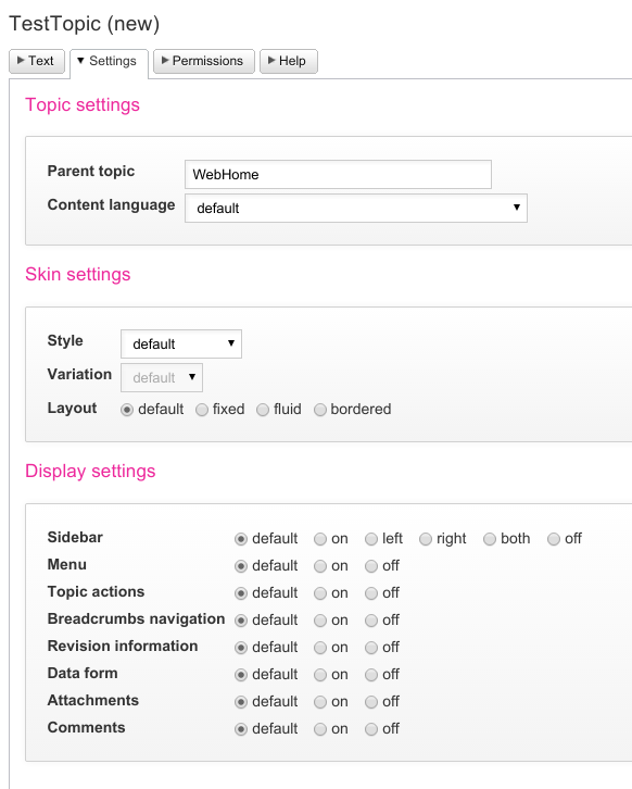 The underlying templates that generate the pages are arranged in a flexible and manageable way to facilitate easy "skin mix-in", that is, overriding specific parts of the templates by using the NatSkin as a parent skin to create template modifications.